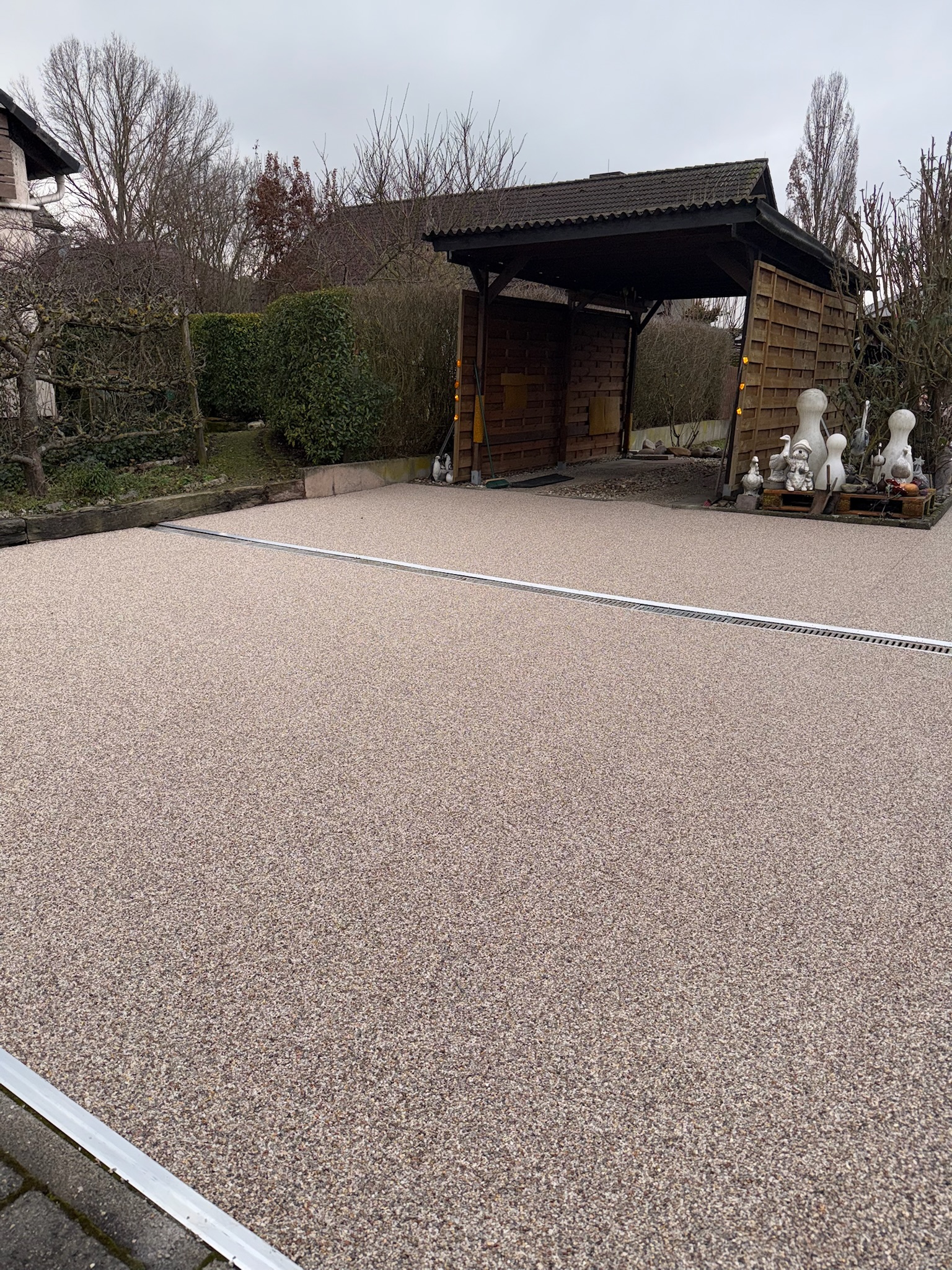 Unser Steinteppich für Einfahrten umfasst die fachgerechte Verlegung auf Außenflächen – inklusive Untergrundprüfung, Vorbereitung, Grundierung und sauberer Randlösung. Durch die fugenlose Struktur wirkt die Oberfläche modern und gepflegt.