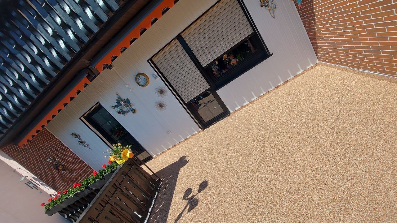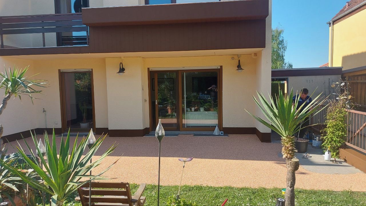 Unser Steinteppich für Terrassen umfasst die fachgerechte Verlegung auf Außenflächen – inklusive Untergrundprüfung, Vorbereitung, Grundierung und sauberer Randlösung. Durch die fugenlose Struktur wirkt die Oberfläche modern und gepflegt.