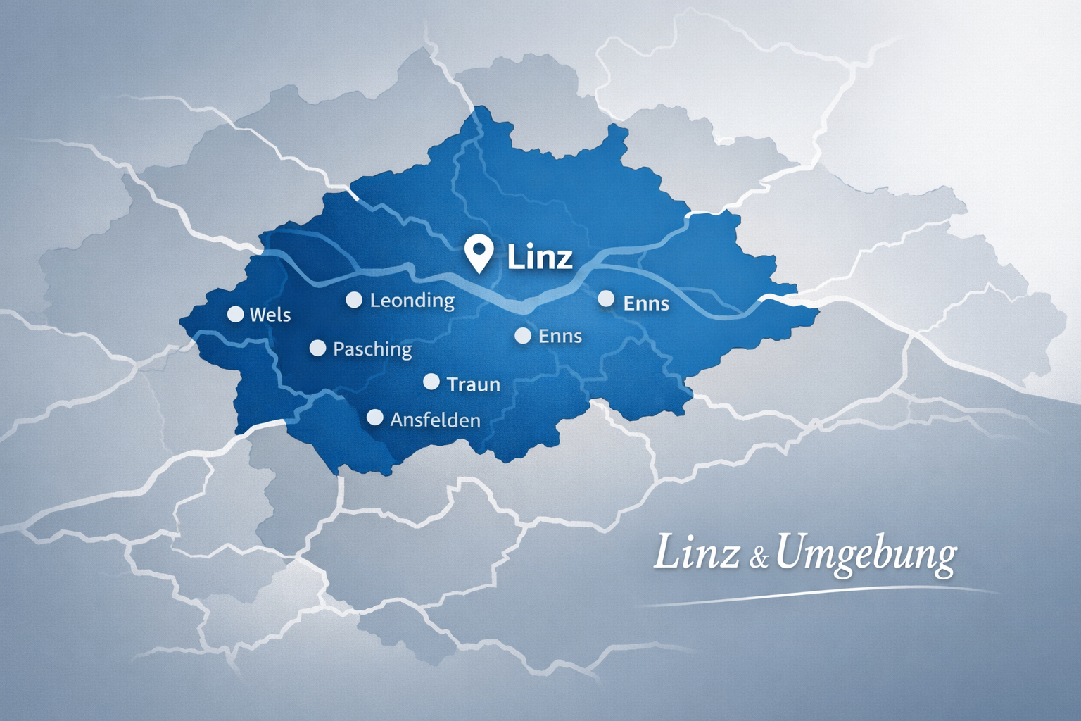 Wir betreuen Projekte in ganz Linz – unter anderem in Urfahr, Dornach, Auhof, Pöstlingberg, Innenstadt, Froschberg, Bindermichl, Spallerhof, Neue Heimat, Ebelsberg, Pichling und Kleinmünchen.